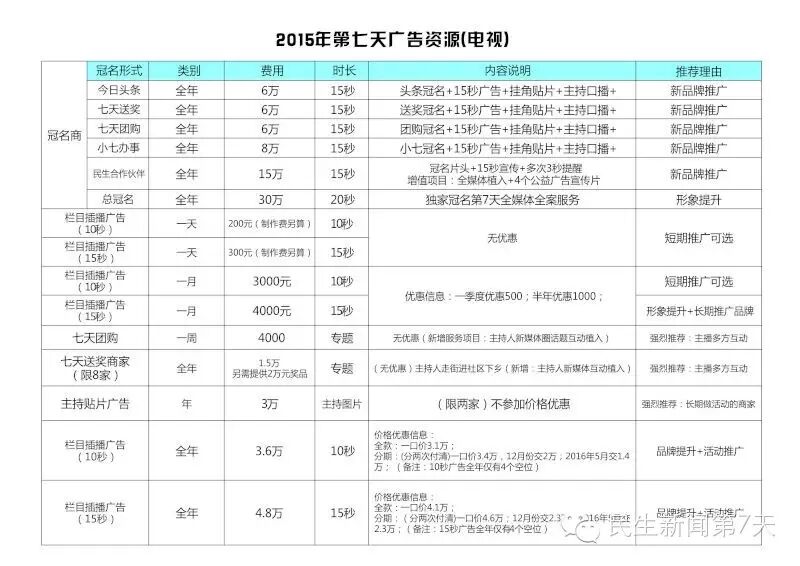 7天文化传媒公司2016广告资源!